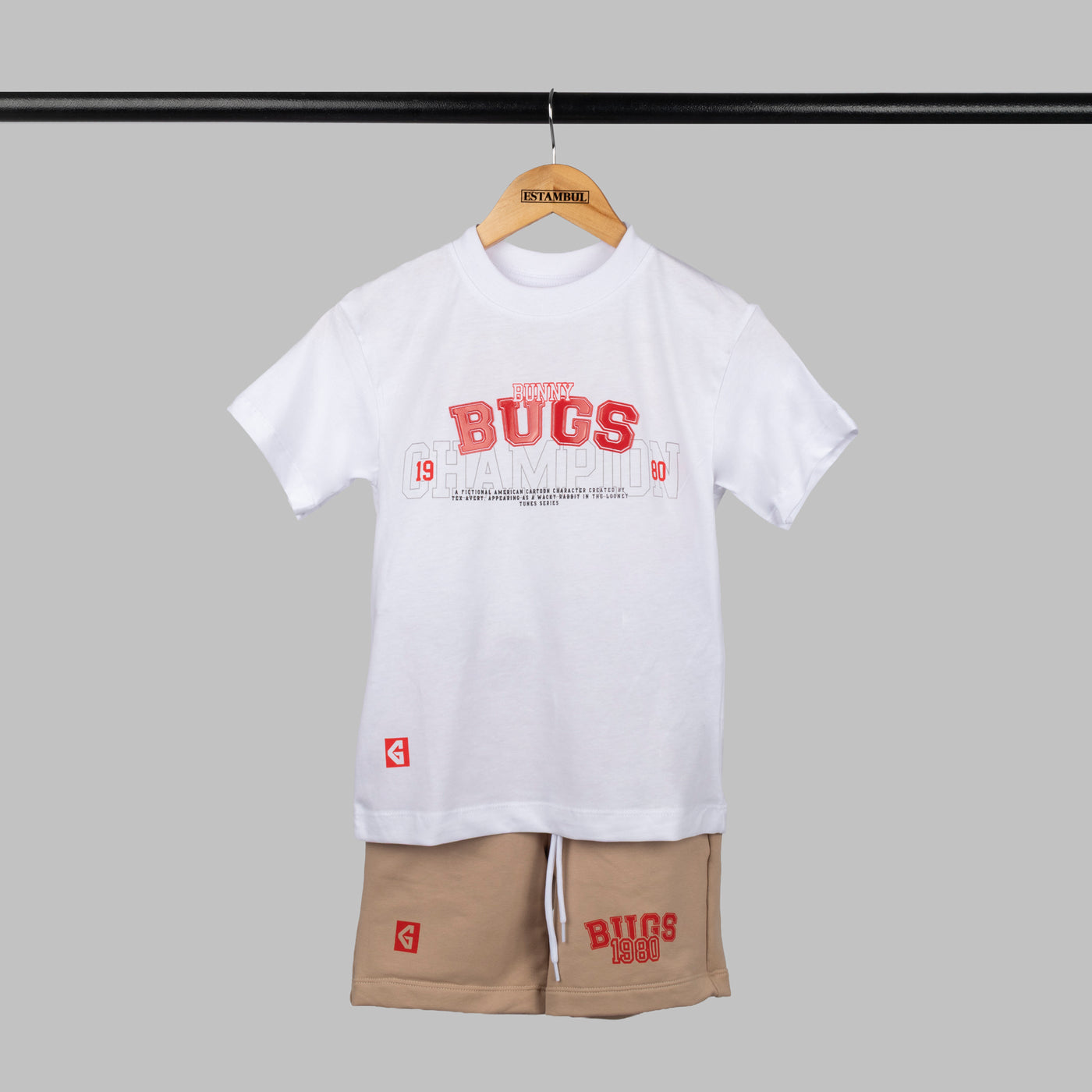 Conjunto infantil con estampado de Bugs Bunny que combina comodidad y estilo. Perfecto para el día a día, cuenta con diseño clásico del personaje favorito que los niños adoran. Ideal para jugar, estudiar o pasar tiempo en familia. Prenda versátil que se adapta a cualquier ocasión casual, manteniendo la calidad y durabilidad que buscas para tu hijo.