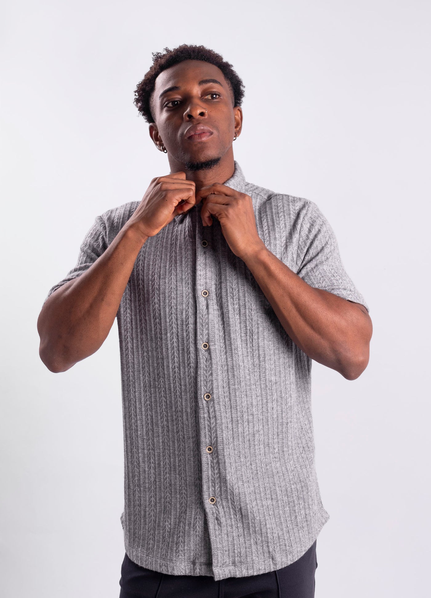 ¡Innova tu estilo con nuestra camisa hombre Textura Cuello Alto! Hecha con tela texturizada para un look único y un cuello alto que te hará destacar. Disponible en un solo tono para una apariencia audaz y desafiante. ¡Atrévete a marcar la diferencia en tu armario con esta camisa!