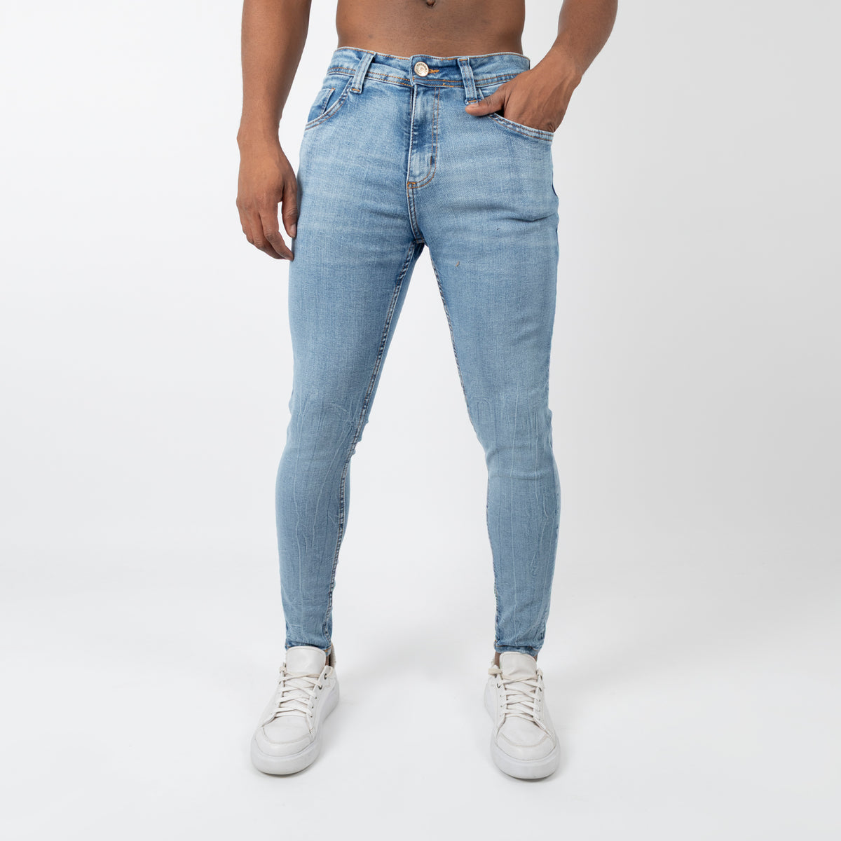 Descubre el jean skinny azul para hombre, diseñado para ofrecer un ajuste moderno y estilizado que realza tu figura. Su color azul clásico combina fácilmente con cualquier atuendo, mientras que su confección en tela de alta calidad garantiza comodidad y durabilidad durante todo el día. Ideal para lucir casual o sofisticado, este jean será tu prenda favorita para cualquier ocasión.