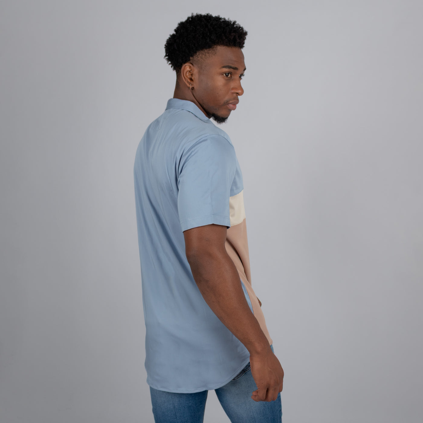 Camisa hombre cortes azul beige