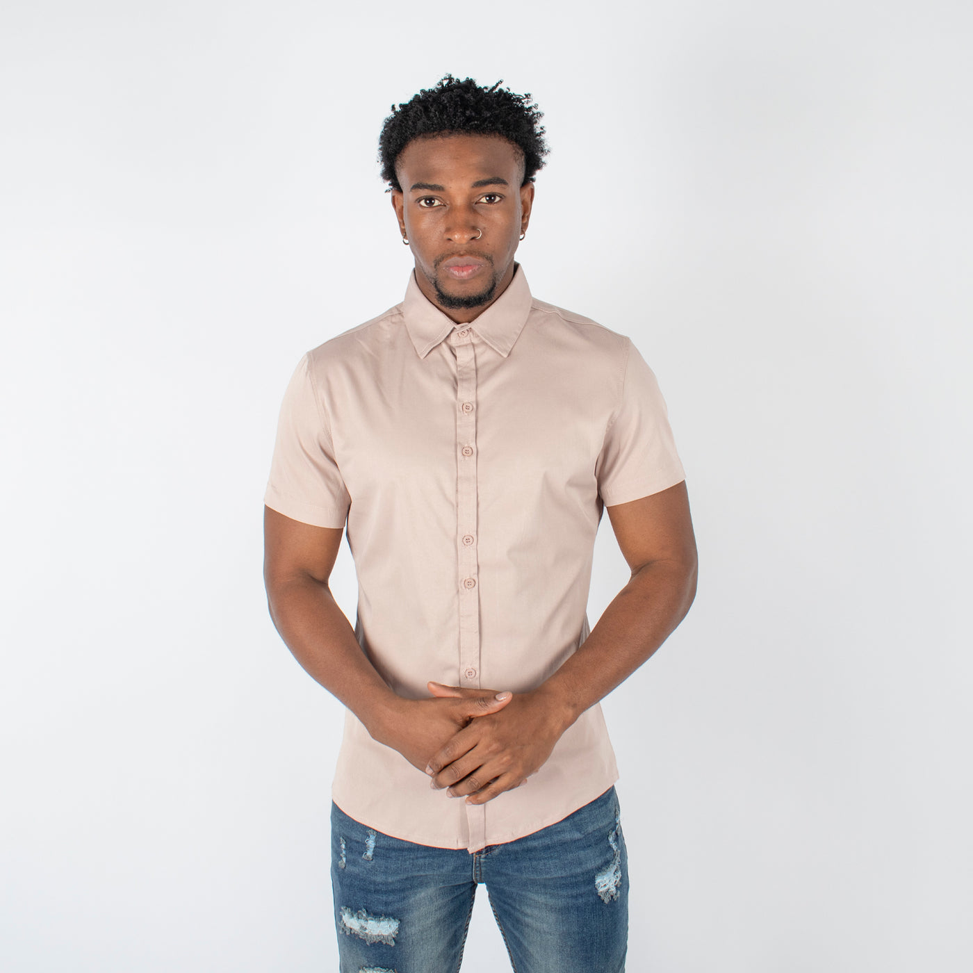 Camisa hombre cuello beige
