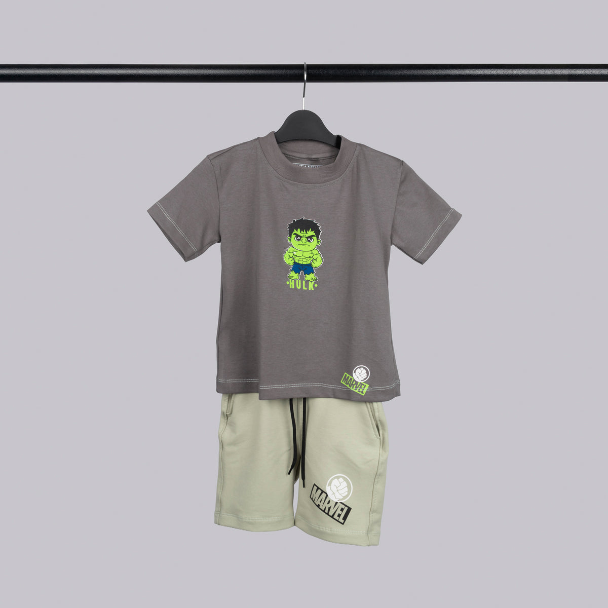 Conjunto baby con estampado del icónico Hulk, perfecto para los pequeños fanáticos de Marvel. Diseñado con telas suaves y cómodas que respetan la delicada piel del bebé. Incluye piezas coordinadas que facilitan el cambio y el cuidado diario. Ideal para crear looks divertidos y temáticos que harán sonreír a tu pequeño mientras disfruta de máxima comodidad.